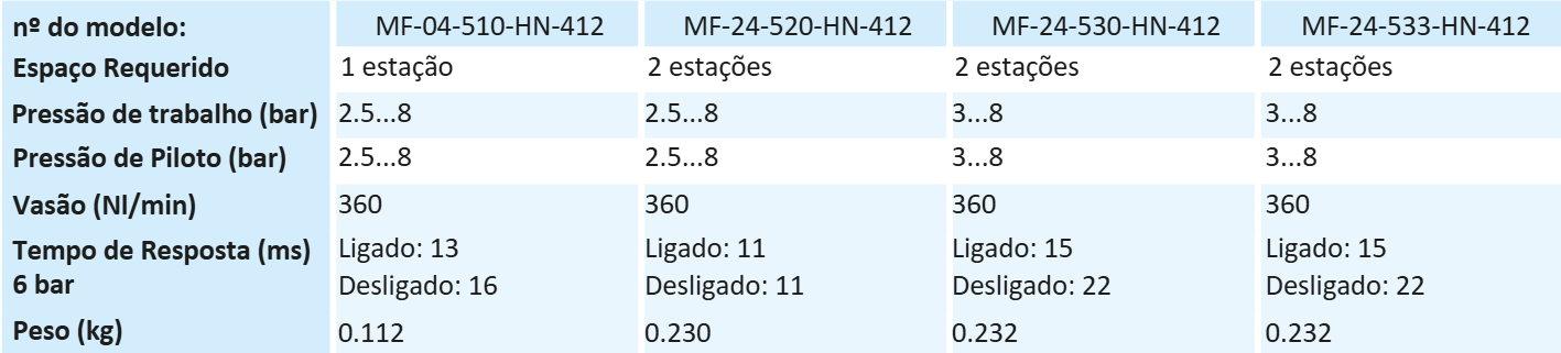 MF-24-530-HN-412 - Válvula solenoide 5/3 vias, centro fechado, serie MF-24